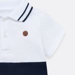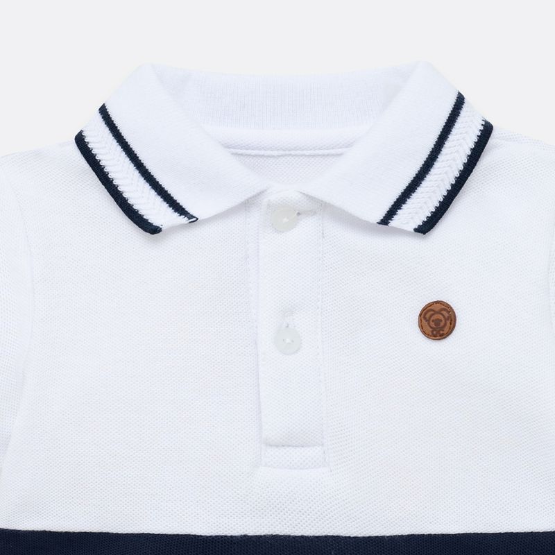 Body polo manga corta en tejido de punto silueta clásica con bloques. Elegancia y comodidad en un solo body. - Cuello tejido - Broches en entrepierna - Color blanco Composición: 100% Algodón ¡Compra ya!