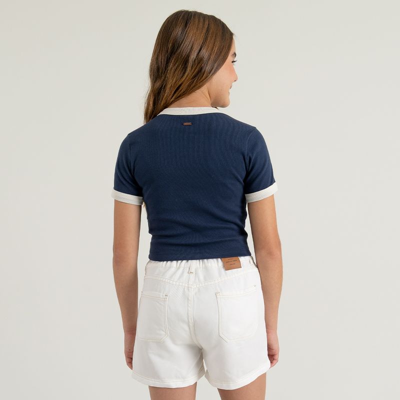 Camiseta manga corta en tejido de punto silueta crop ideal para un look casual y cómodo.