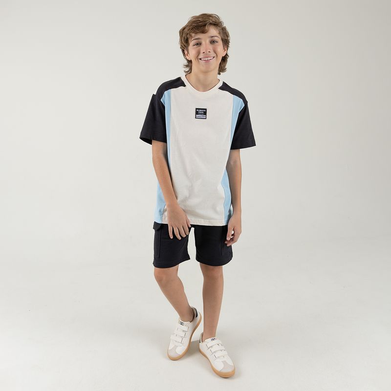 Camiseta manga corta en tejido de punto silueta clásica de bloques. Clásico y cómodo; la camiseta ideal para las mil aventuras.