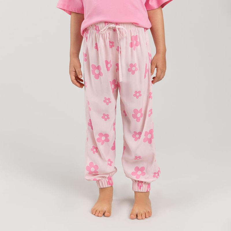 Pantalón en tejido plano con cintura y botas elásticas, cordón ajustable.