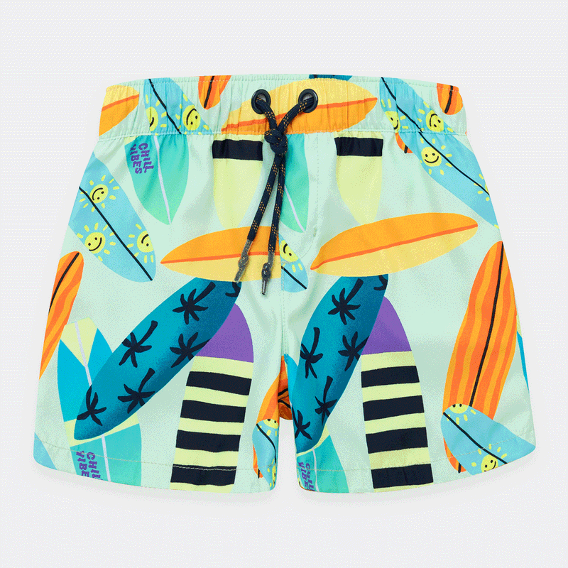 Pantaloneta de baño en tejido plano silueta clásica. Listos para la aventura bajo el sol y el agua.