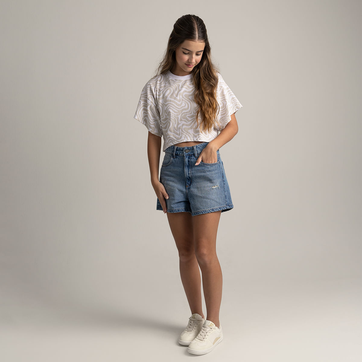 Camiseta croptop manga sisa para niña con abertura en la espalda